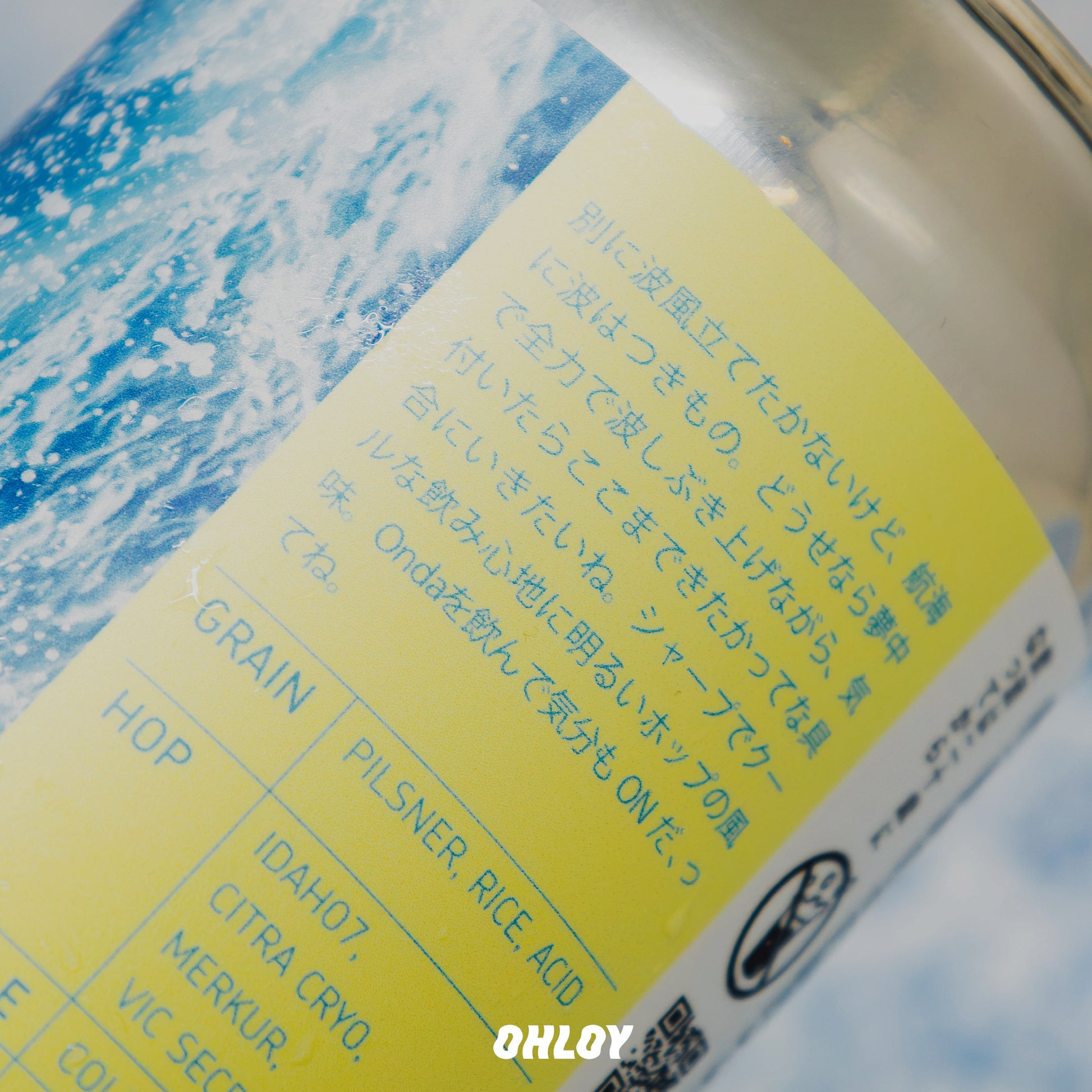 ラベルデザインにはOHLOY当初から共に苦楽を共有している近藤君による爽快感ある波しぶきの写真を。タイトルのOndaはスペイン語やイタリア語で「波」を意味する言葉。オンダを飲んで気分もONだ、なんて気楽な感じで荒波を乗りこなして、後悔なきよう航海していきましょう!